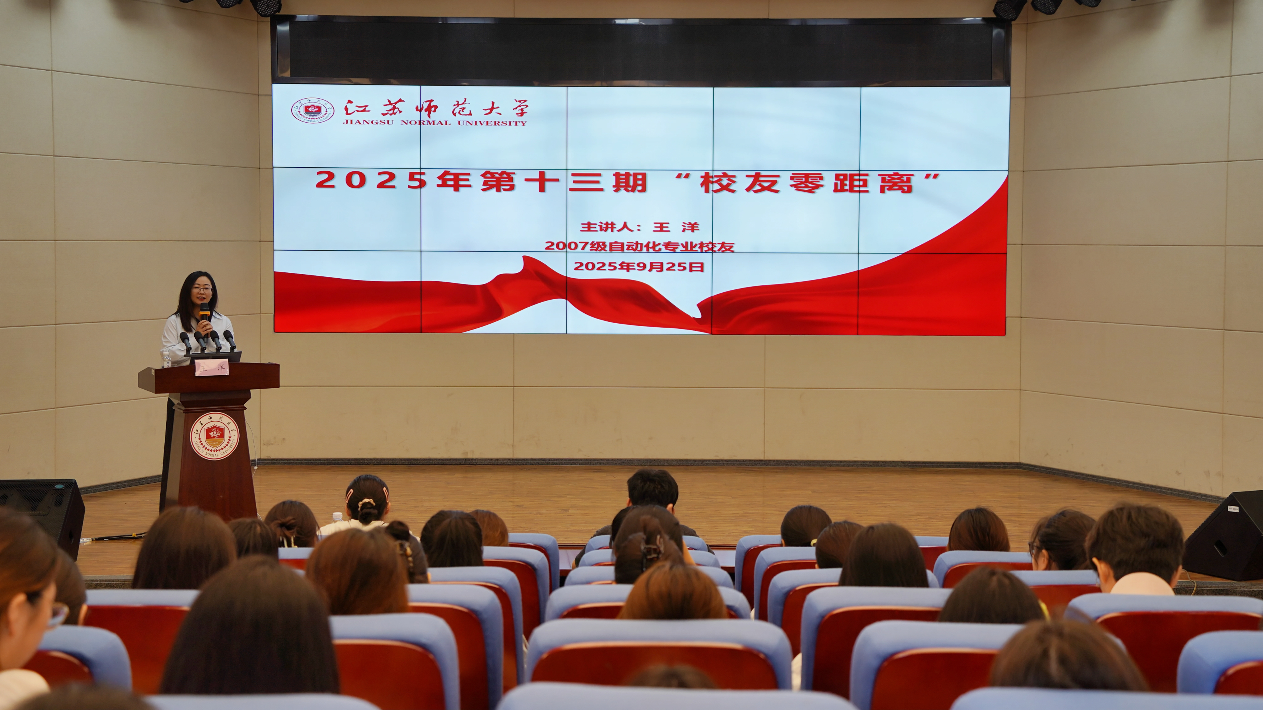 9月25日下午,2025年第十三期“校友零距离”在泉山校区13号楼106报告厅举行。我校2007级自动化专业校友、无锡信捷电气股份有限公司董事兼人力资源负责人王洋受邀参加活动,以《双向选择——企业与人才双向奔赴,如何找到同频职场》为题,与在校学子进行深度交流。