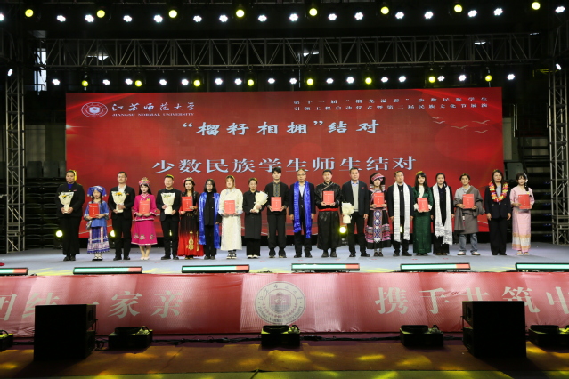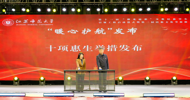 活动现场进行“暖心护航”发布,解读《江苏师范大学“榴光溢彩”工程实施办法(2025年修订)》核心内容,揭晓“十项惠生举措”;开展“同心同向”聘任,为第十一届校内外“曙光导师”“韶光益友”颁发聘书;举行“榴籽相拥”少数民族师生结对仪式;开展“逐光奋进”获奖学生颁奖环节。