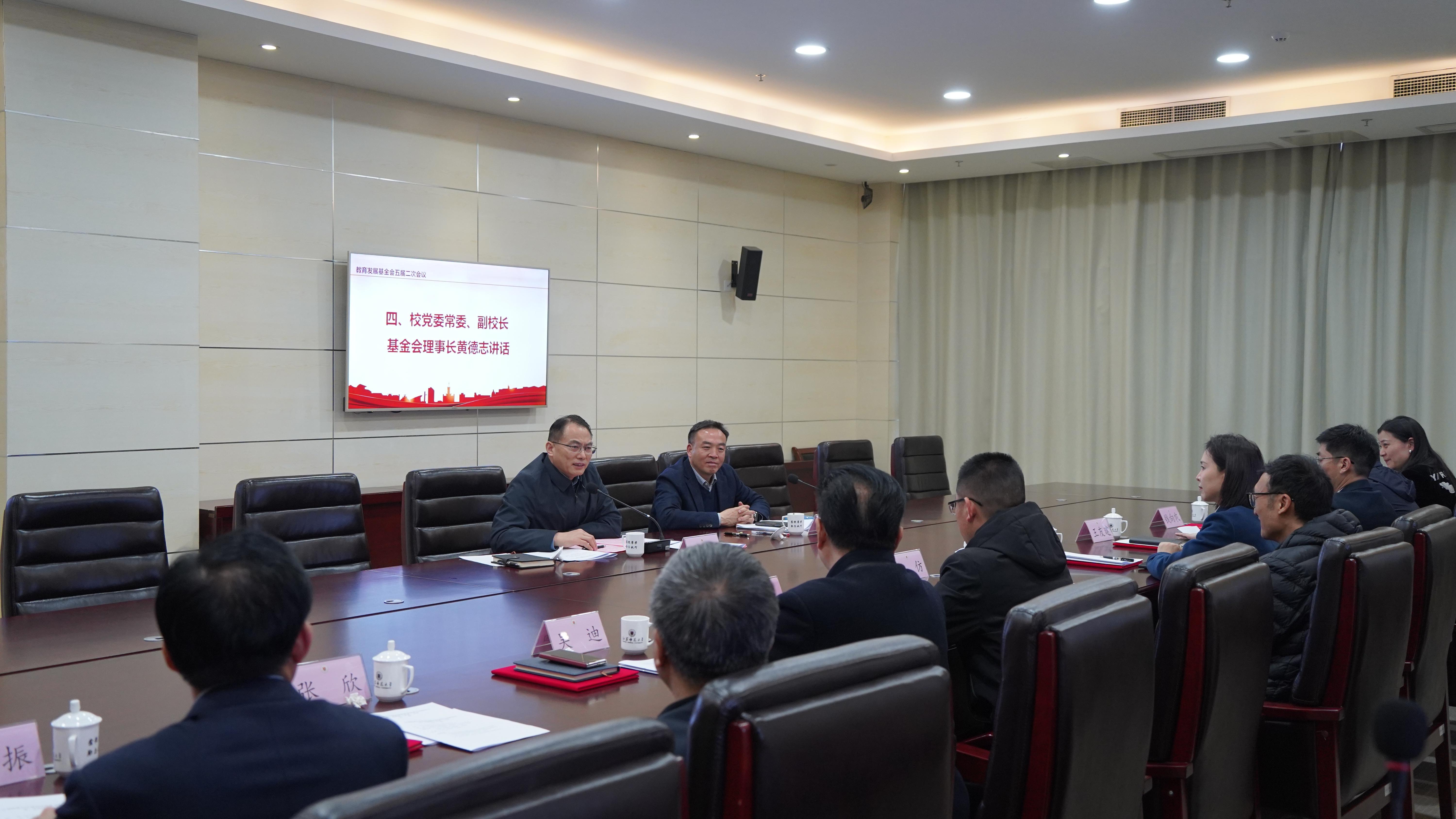 新当选理事长黄德志代表新一届理事会,向上一届理事会为基金会事业发展打下的坚实基础、作出的积极贡献表示感谢。他指出,今年是学校“十五五”规划开局之年,各位新任理事、监事要以此次换届为契机,强化责任担当、创新发展思路、提升工作效能,奋力开创基金会工作新局面。一要提高站位,在服务学校大局中展现新作为,聚焦学校中心工作,引导资源向重点学科、核心人才集聚,以高水平基金会建设支撑高水平大学建设;二要规范治理,在筑牢公信根基上迈出新步伐,完善内部治理结构,严格遵规守法,强化风险防控,以透明规范的形象赢得持久信任;三要拓宽渠道,在汇聚资源合力上实现新突破,探索多元化筹资模式,深挖校友资源,凝聚社会力量,构建全方位资源汇聚新格局。就2026年工作安排,他要求,一是深化机制改革,健全理事会决策机制,激活内生动力;二是严守规范底线,确保基金会运营全程合法、合规、透明,夯实运营根基;三是拓宽筹资渠道,以75周年校庆为契机,探索多元化筹资形式,强化资金保障;四是打造公益品牌,遴选培育标志性公益项目,提升社会影响;五是管好财务资金,坚持开源与节流并重,提升使用效益。他勉励全体理事主动担当、积极作为,共同推动各项工作落地见效,为学校高质量发展贡献更多更大公益力量。