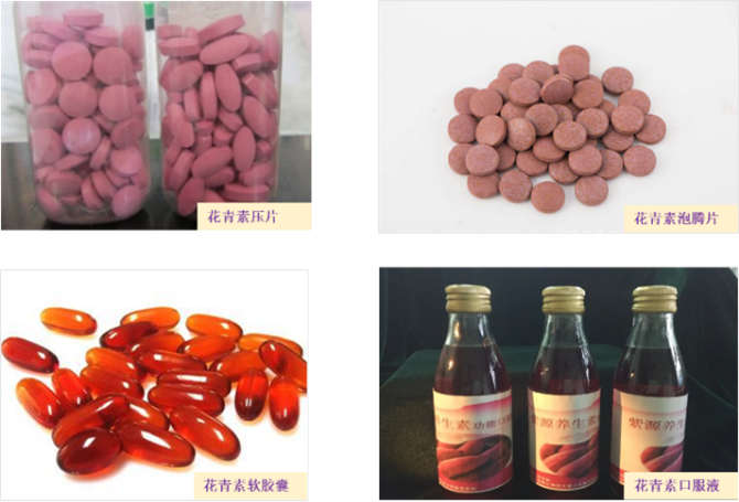 (1)药食同源产品研发及产业化。为充分利用徐州丰富的药食植物资源,提升其生物医药与健康价值,从甘薯、银杏、桦褐孔菌等资源中提取药物活性成分,相继研发了甘薯绿原酸制剂、桦褐孔菌口服液、花青素口服液、甘薯膳食纤维代餐粉及胶囊等新产品,有效缓解认知障碍、提高机体免疫、调节机体代谢,提升了相关资源产品附加值。