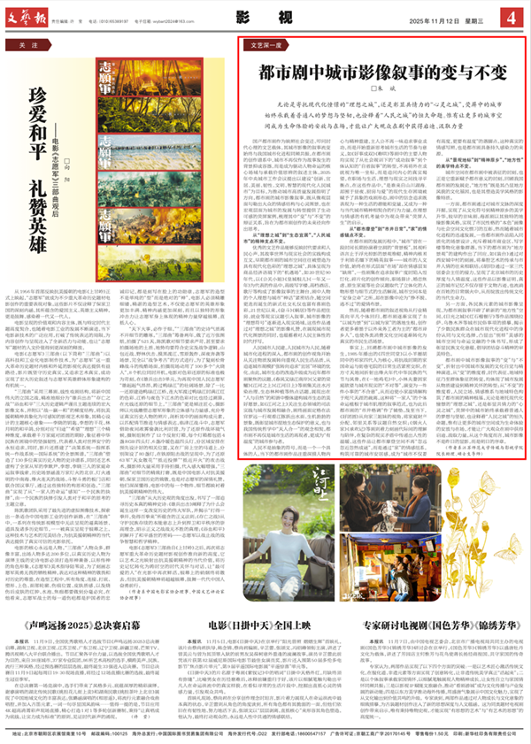 文艺报11月12日发表我校传媒与影视学院院长助理、硕士生导师朱斌理论文章,内容如下:都市剧中城市影像叙事的变与不变□朱斌国产都市剧作为映照社会变迁、叩问时代心理的文艺载体,其城市影像的叙事流变始终与我国城市化进程同频共振。在都市剧的创作谱系中,城市不再仅作为故事发生的背景抑或容器,而是成为驱动人物命运的核心场域与承载价值思辨的叙述主体。2025年中央城市工作会议提出以建设“创新、宜居、美丽、韧性、文明、智慧的现代化人民城市”为目标,为推动城市高质量发展指明了方向。都市剧的城市影像叙事,既从微观层