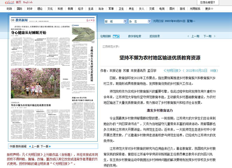 【光明日报】江苏师范大学:坚持不懈为农村地区输送优质教育资源