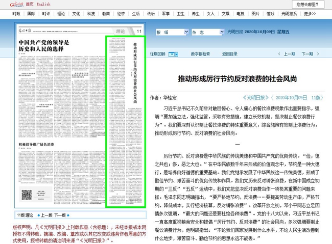 光明日报10月9日刊发我校校华桂宏书记理论文章,内容如下:推动形成厉行节约反对浪费的社会风尚 习近平总书记不久前针对触目惊心、令人痛心的餐饮浪费现象作出重要指示,强调“要加强立法,强化监管,采取有效措施,建立长效机制,坚决制止餐饮浪费行为”。我们要深刻认识制止餐饮浪费的特殊重要意义,综合施策有效制止浪费行为,推动形成厉行节约、反对浪费的社会风尚。一 厉行节约、反对浪费是中华民族的传统美德和中国共产党的优良传统。“俭,德之共也;侈,恶之大也。”在中华民族数千年来形成的价值观念中,节约是一种