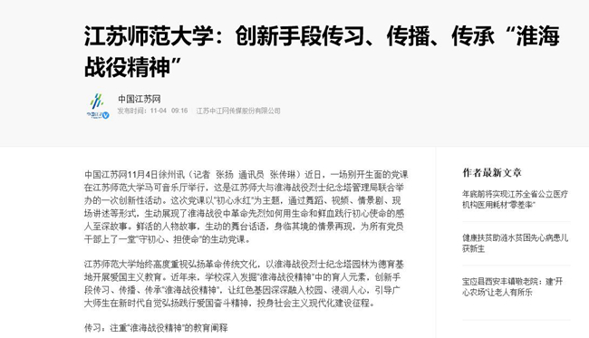 【中国江苏网】江苏师范大学:创新手段传习、传播、传承“淮海战役精神”