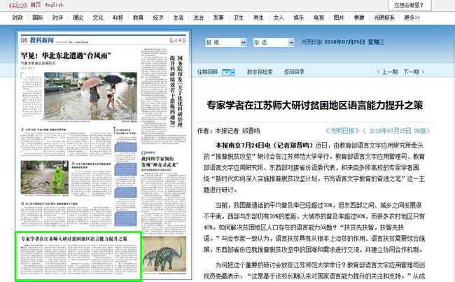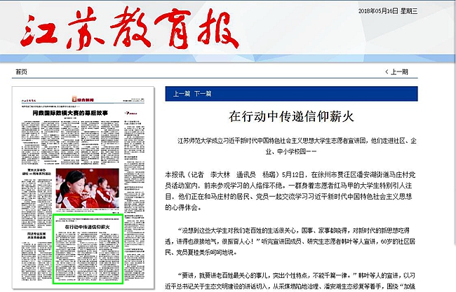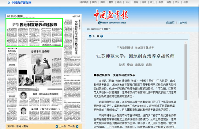 中国教育报10月8日第3版报道我校外教保罗·贝利工作事迹,报道全文如下:三尺讲台上的“洋劳模”——记江苏师大外籍教师保罗·贝利本报记者李大林通讯员李坤 “这枚奖章非常漂亮,代表了至高无上的荣誉,家人都为我感到骄傲!”近日,江苏师范大学外国语学院教师保罗·贝利欣喜地把自己获得“江苏省五一劳动荣誉奖章”的消息,告诉了远在美国波士顿的亲人。 2008年来华执教至今,保罗已在江苏师大生活了10年。作为一名外籍教师,保罗扎根讲台,以生为友,结缘中国。“洋劳模”站立的那方小小讲台,也成了中美交流的舞