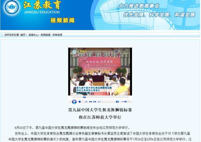 【中国新闻网】于7月30日多次报道我校承办的第九届中国大学生舞龙舞狮锦标赛