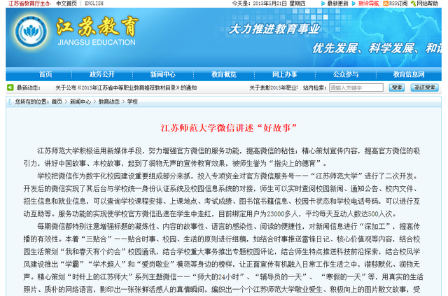 【江苏教育】江苏师范大学微信讲述“好故事”