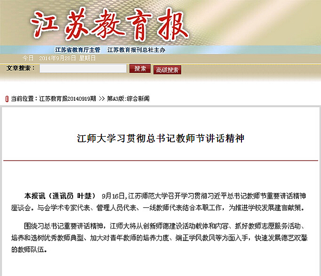 【江苏教育报】江师大学习贯彻总书记教师节讲话精神