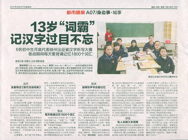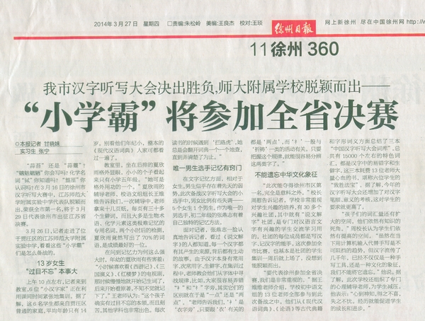 【都市晨报】师大附属实验学校6名初中生月底代表徐州出征省汉字听写大赛
