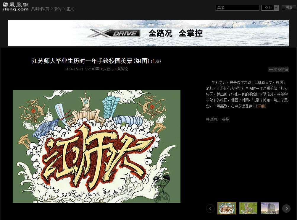 【凤凰网】江苏师大毕业生历时一年手绘校园美景