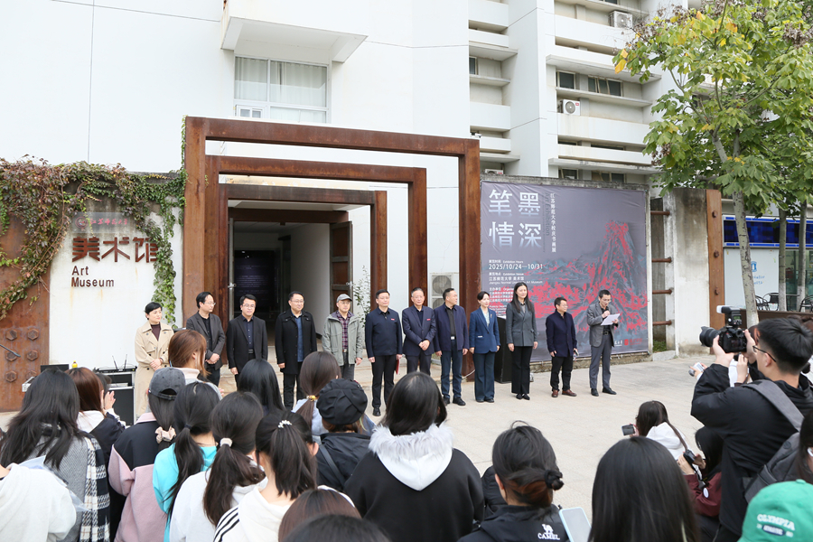 10月24日下午,我校在泉山校区美术馆举行“笔墨情深·校庆书画展”开幕式,以艺术献礼学校73周年华诞。校党委常委、副校长商亮,相关部门和学院负责人,师生和校友代表100余人参加活动。商亮在开幕式上致辞,他向为本次书画展付出辛勤劳动的工作人员以及所有倾情创作的师生、校友们表示感谢,阐释了举办此次书画展的重要意义。他表示,举办此次书画展,用最雅致、最真诚的笔墨,为学校庆生,是一次家人之间才情的展示与心灵的对话,以艺术为纽带串联起我们共同的记忆与对未来的期许。参展作品的一笔一划、一草一木、一景一物,无