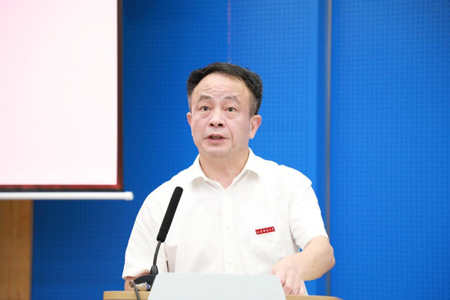 6月10日下午,我校在分析测试中心300会议室举行2025年度“奕文”创新奖学金奖颁奖典礼。校党委书记芮国强,“奕文”创新奖学金捐赠人、苏州校友会会长、百容集团董事长王建波出席活动,校相关职能部门负责同志、文学院师生代表参加活动。典礼在庄严的国歌声中拉开序幕。校党委书记芮国强在讲话中向获奖学子提出三点期望:一要立足学科专业前沿,勇做矢志创新的“攀登者”;二要传承师大精神,争当知行合一的“践行者”;三要胸怀家国天下,立志成为引领未来的“答卷人”。他要求持续优化“奕文”创新奖学金的评审管理机制,确保